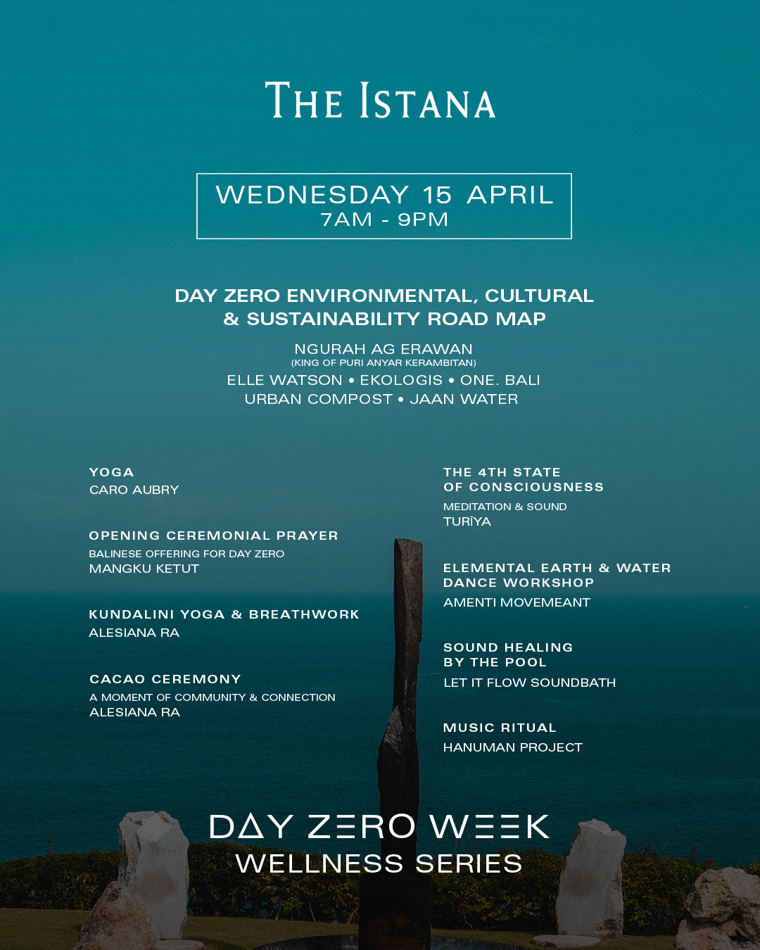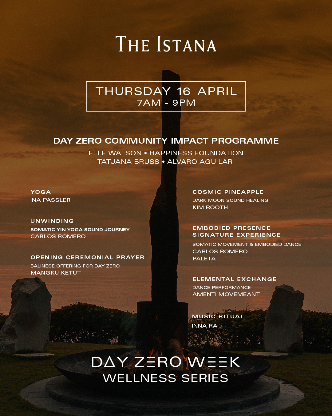Set on the cliffs of Uluwatu at the iconic The Istana, the Istana Wellness Series is a convergence of wellness, mysticism, culture, and connection where the spirit of Bali meets the global energy of Day Zero Festival, guided by the philosophy of Tri Hita Karana.