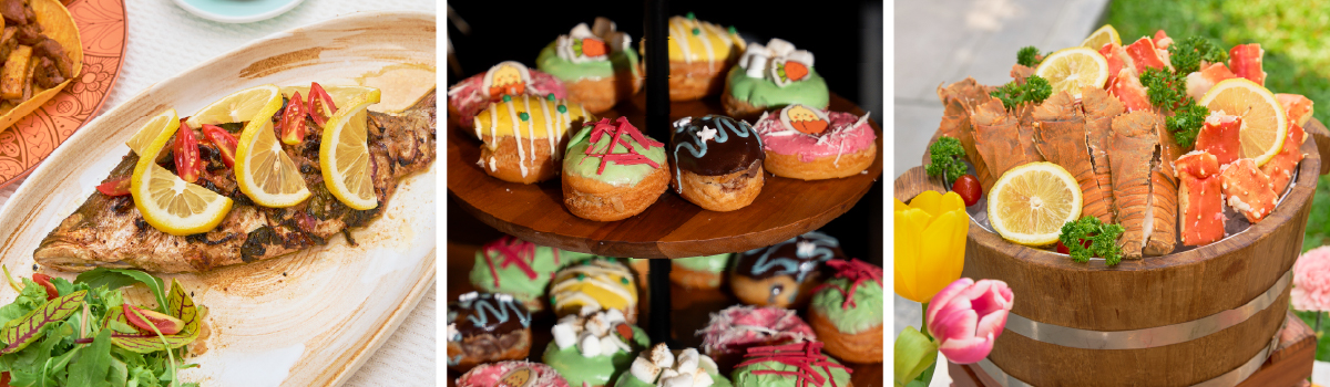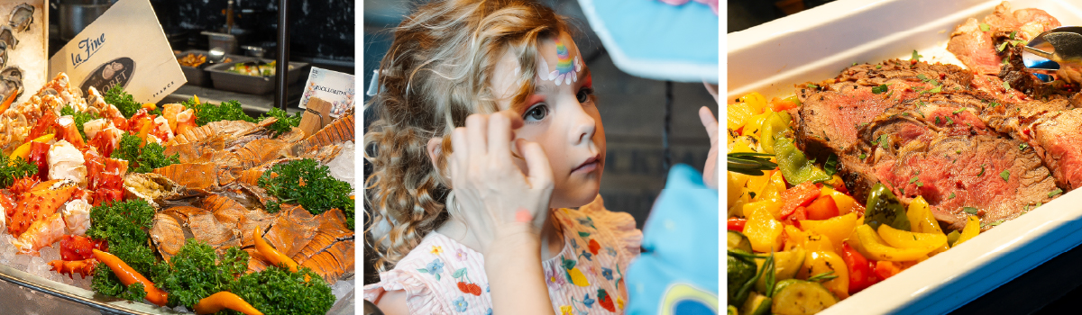 Expect a generous spread across the restaurant, from freshly shucked oysters, king crab and rock lobster to sushi and sashimi. Wander through global live stations serving Arabic mezze, Indian curries and Latin American favourites, alongside comforting pasta, artisanal sausages, smoked brisket and Easter classics like honey-glazed ham, herb-roasted lamb and slow-roasted beef.
