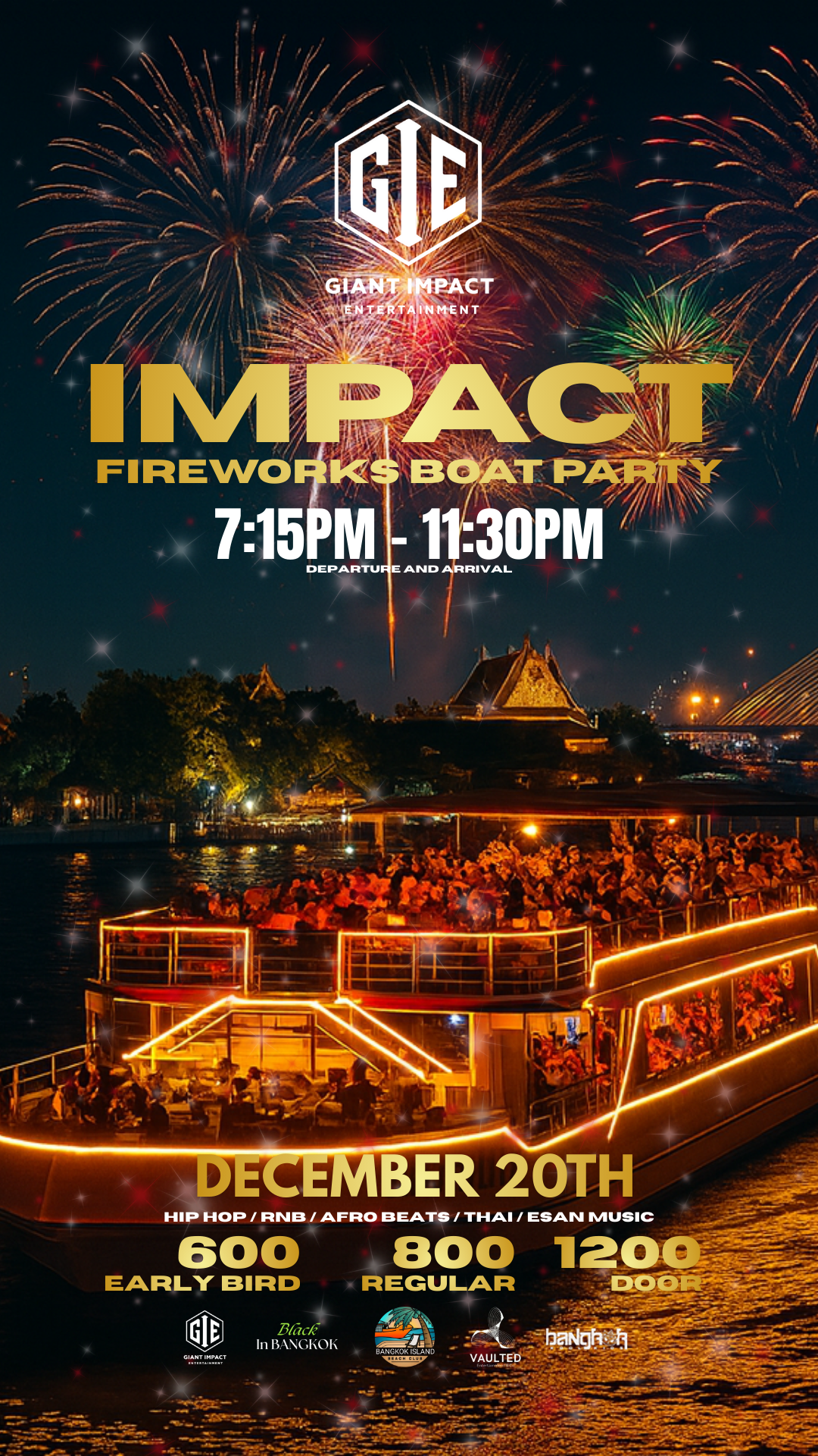 Our DJs will bring the heat with a vibrant mix of Hip-Hop, R&B, Afrobeats, Thai, and Isaan music, creating the perfect soundtrack for an epic night on the water.
