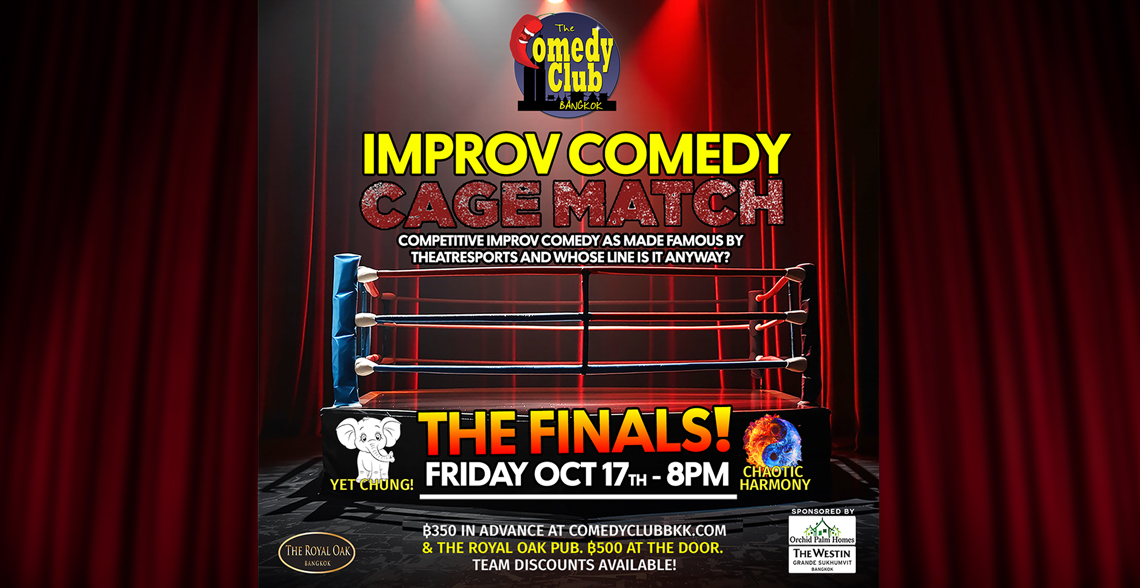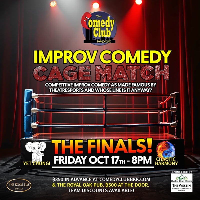 The Comedy Club Bangkok presents THE FINALS of our competitive improv comedy show - CAGE MATCH! With comedy as made famous by 'WHOSE LINE IS IT ANYWAY?'.