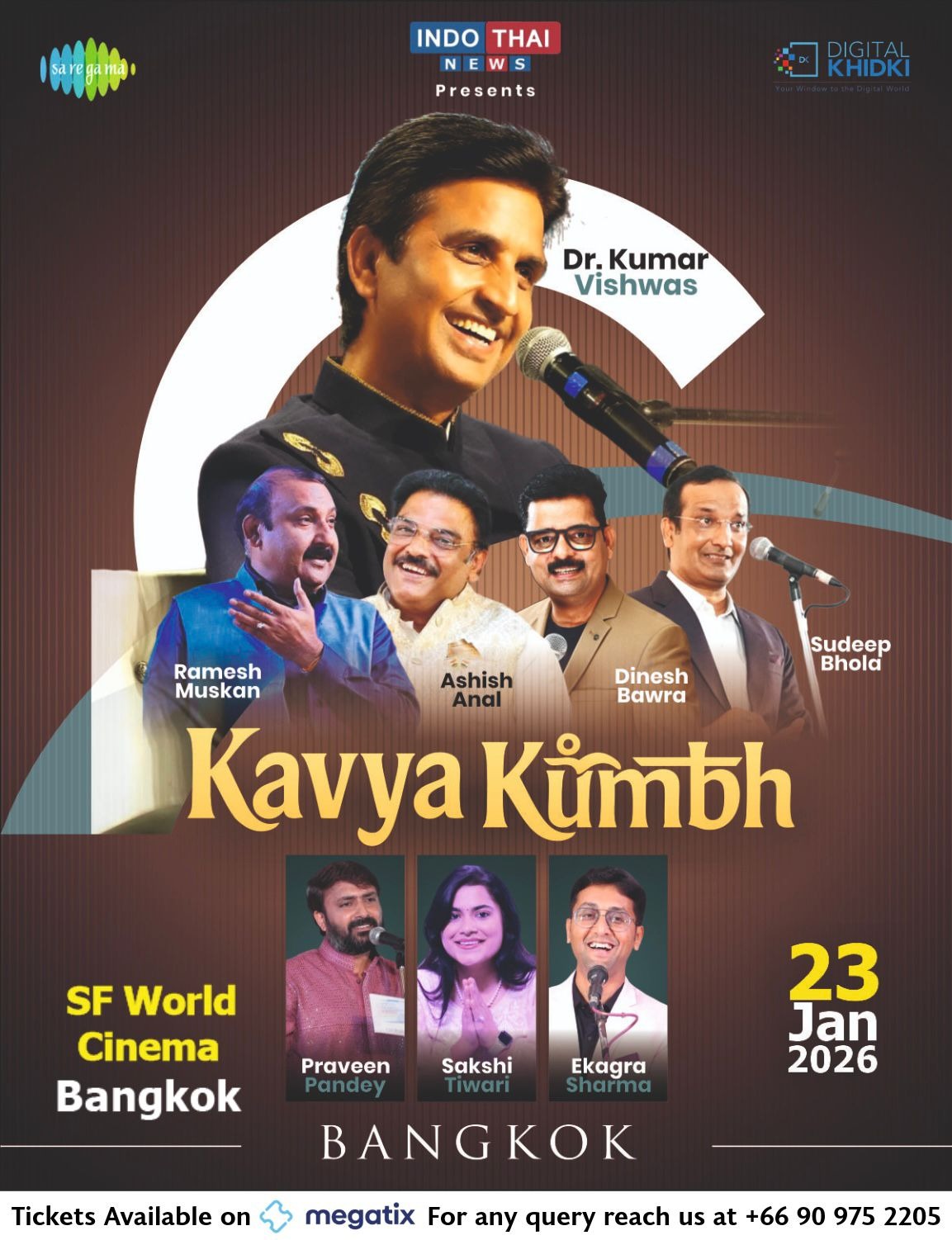 Kavya Kumbh – Season 3 is proudly presented by Indo Thai News, a trusted platform connecting cultures, communities, and conversations across borders. Through its commitment to meaningful storytelling and cultural exchange, Indo Thai News continues to support and promote events that celebrate Indian heritage on an international stage.