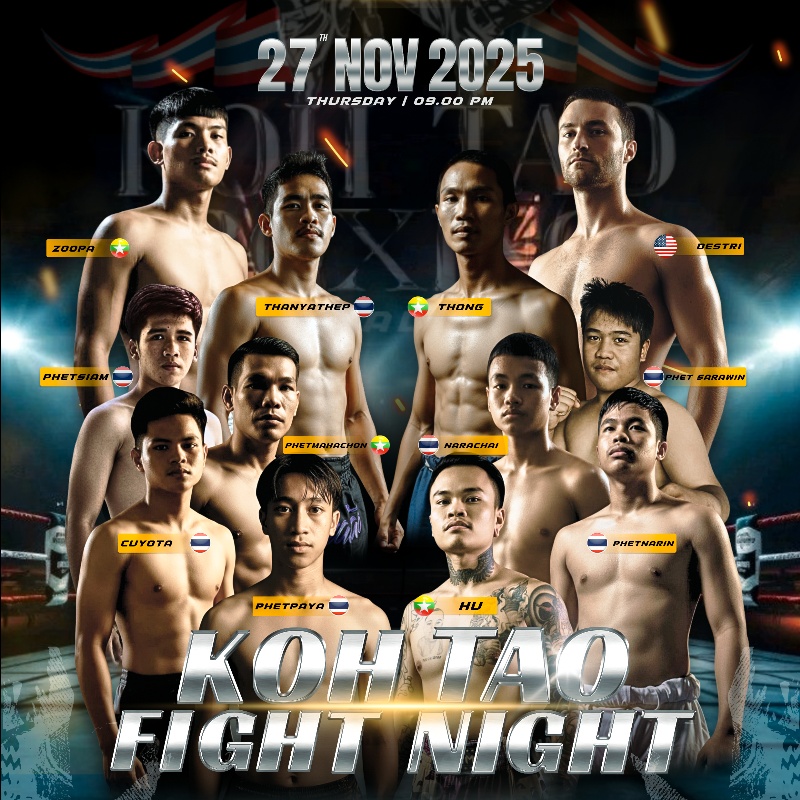 วันพฤหัสบดี ที่ 27 พ.ย. 2568 ณ สนามมวยเกาะเต่าบ็อกซิ่งสเตเดียม