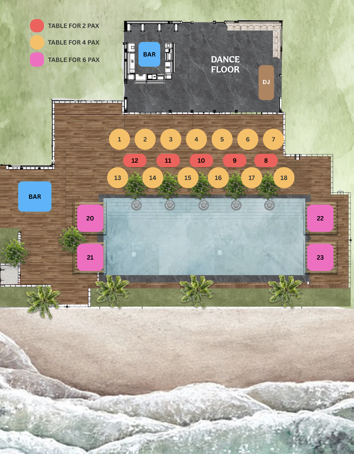- 1x ENTRY to Beach House's NYE COASTAL RHYTHM EVENT priced at 500,000 IDR (special discounted combo ticket rate)