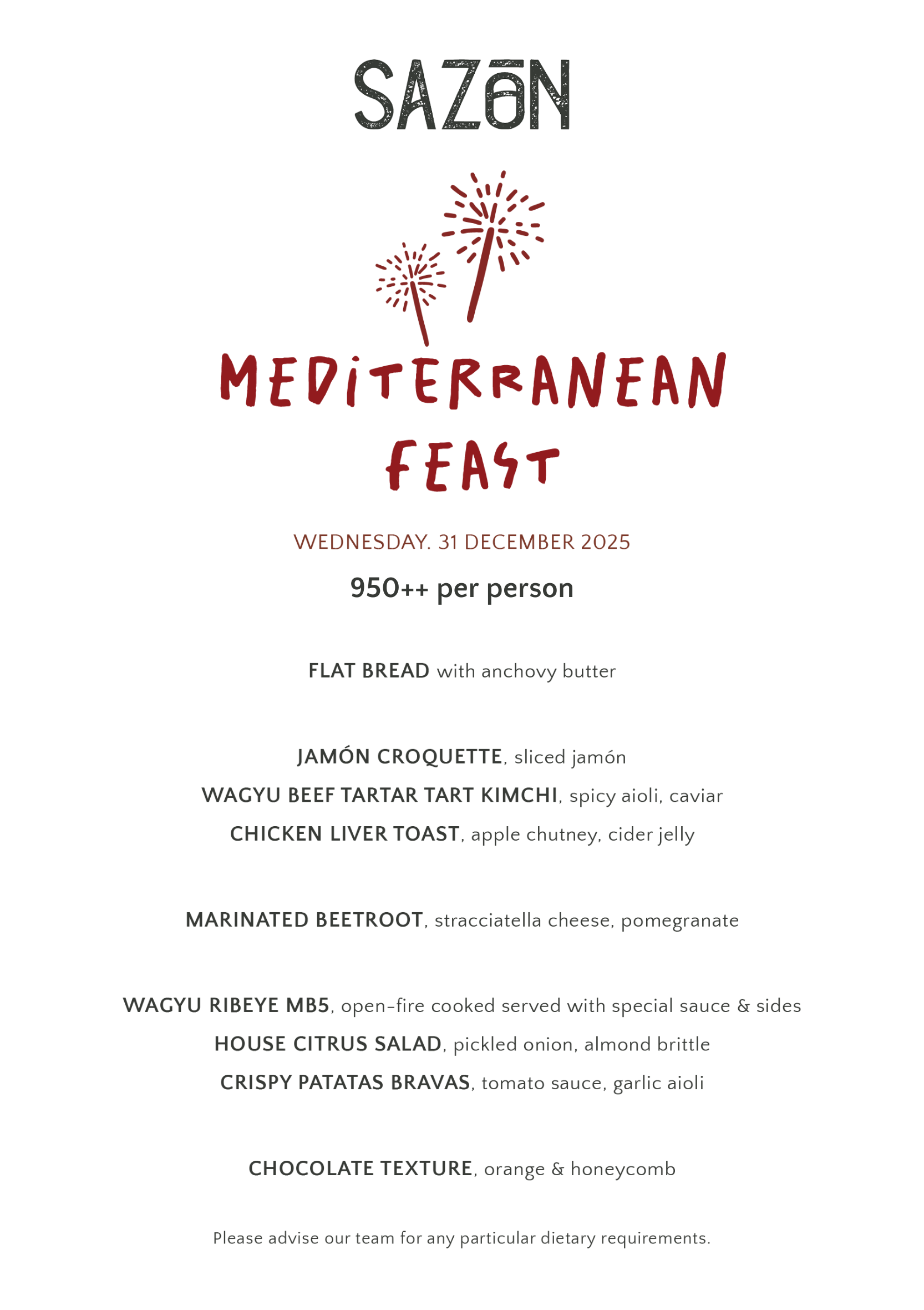 🍽️ 🍸NYE PRE-PARTY DINNER AT SAZÓN CURATED BY AWARD-WINNING CHEF ANDREW WALSH