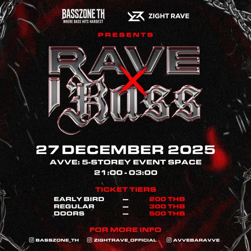 🔥 BASSZONE TH x ZIGHTRAVE ภูมิใจนำเสนอ — RAVE X BASS @ AVVE Bangkok วันที่ 27 ธันวาคม 2025!