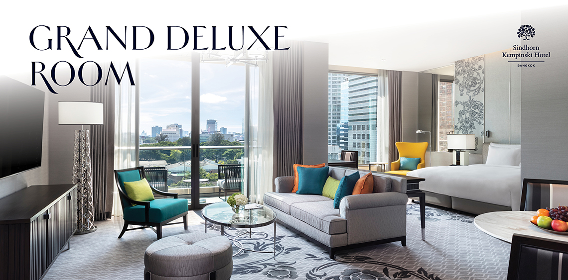 สัมผัสประสบการณ์การพักผ่อนสุดหรูหรากับห้องพักระดับแกรนด์ ดีลักซ์ (Grand Deluxe room) โดดเด่นด้วยพื้นที่ขนาดห้องพักเริ่มต้นที่ 66 ตารางเมตร ให้ความรู้สึกโปร่งโล่งสบาย เปิดรับแสงธรรมชาติผ่านหน้าต่างบานใหญ่ พร้อมระเบียงส่วนตัวที่ให้คุณได้ดื่มด่ำกับวิวเมืองอันงดงามท่ามกลางบรรยากาศที่ผ่อนคลาย ผสานการออกแบบห้องพักอย่างมีเอกลักษณ์และการตกแต่งในสไตล์ไทยร่วมสมัย พร้อมสิ่งอำนวยความสะดวกครบครัน เพื่อให้คุณได้พักผ่อนอย่างแท้จริง