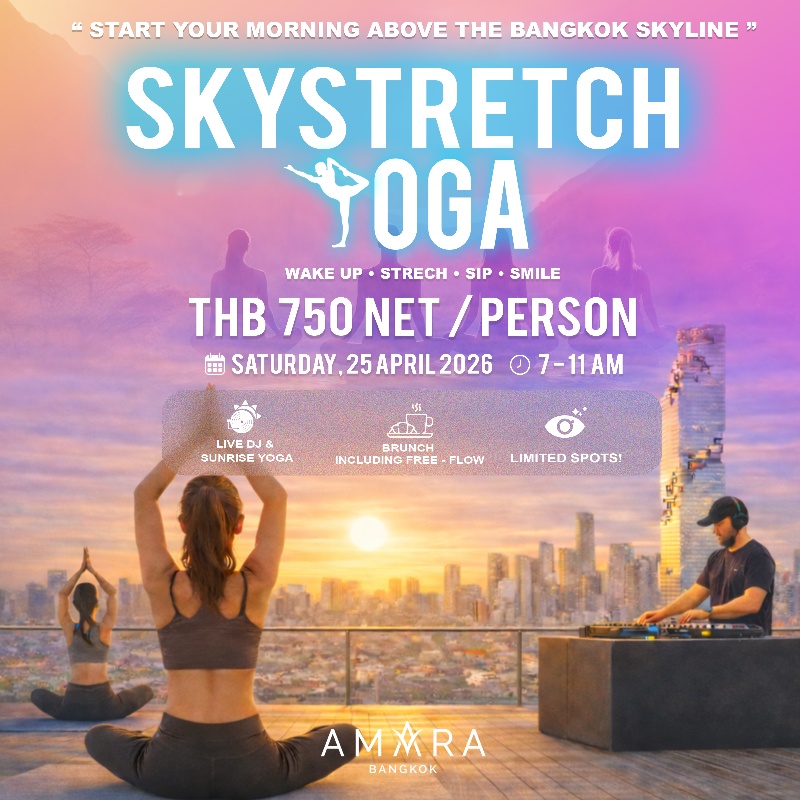 Why stay grounded when you can touch the sky? Join us for SkyStretch Yoga—an elevated flow designed to align your body and spirit, 20 floors above the Bangkok hustle. 🏙️🧘♀️