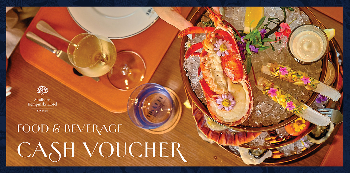 📍  The vouchers are applicable with Flourish, Ki Izakaya, Bistrot De La Mer, Lobby Lounge, Berthold Delikatessen and Firefly Bar. at Sindhorn Kempinski Hotel Bangkok