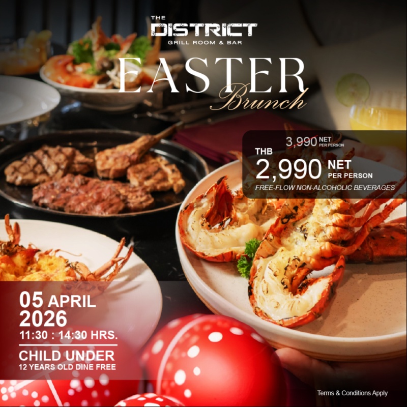 Celebrate Easter in style at The District Grill Room & Bar with an egg-citing Sunday Brunch on 5 April 2026 from 11:30 – 14:30 hrs.