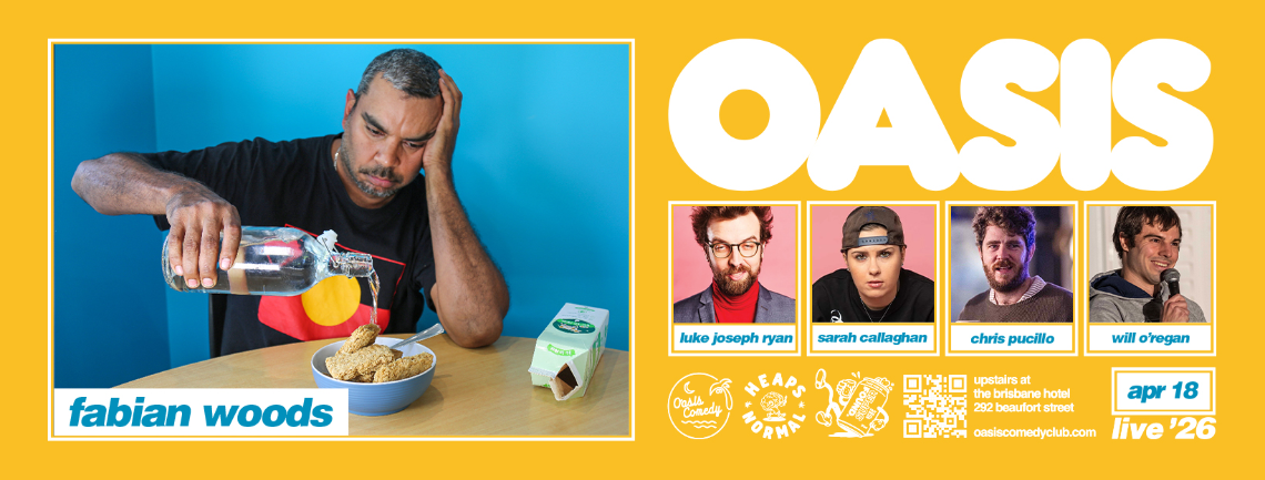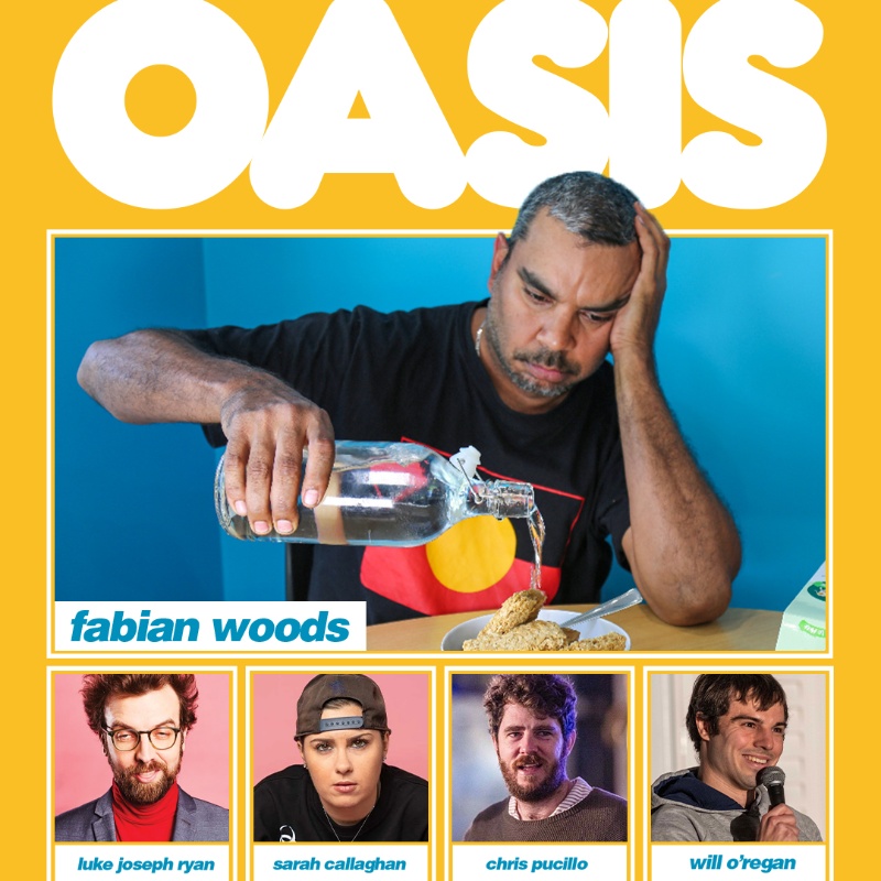 April 18, Deadly Funny winner Fabian Woods headlines Oasis for the first time!